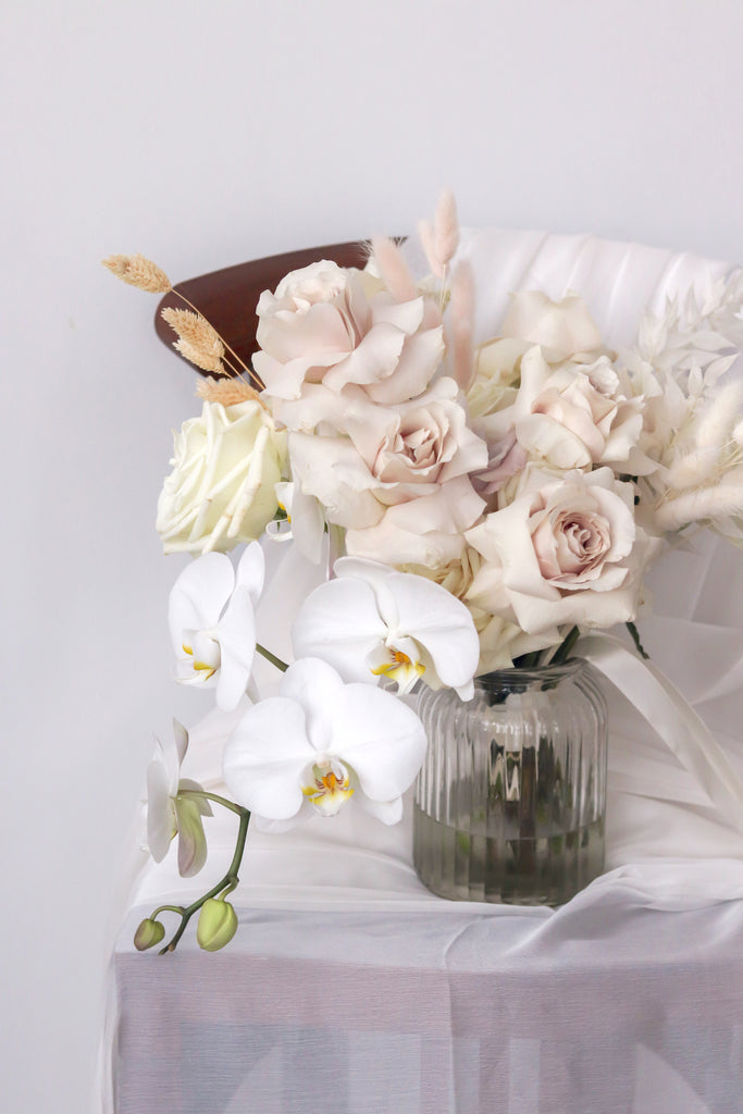 - Phalaenopsis cascade/upgrade to premium flowers eg. peonies/David Austin roses (last 4 bouquet pictures): $40